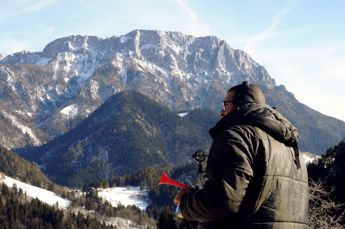 Les phénomènes sonores d’écho et de réverbération sont au centre des recherches de Fouad Bouchoucha, qu’il concentrera à cette occasion sur l’étude topographique de paysages slovènes par le biais du son. Les propriétés de réflexion et de persistance d’un son étant relatives à un espace précis, l’artiste se propose d’observer le potentiel de résonance de ces différents paysages, selon des degrés variables d’encaissement et de dégagement, et en les transformant littéralement en autant de caisses de résonances. En guise d’amorce à l’œuvre, l’artiste, dans un premier temps, utilisera un signal invariable émis et enregistré dans plusieurs environnements qui en modulent le son. Ces premières captations sonores serviront de base de réflexion à une formalisation plastique et permettront d’en observer la force de suggestion spatiale, impliquant autant les habitudes déductives liées à la mémoire, que les réflexes de reconstitution d’un paysage imaginaire.