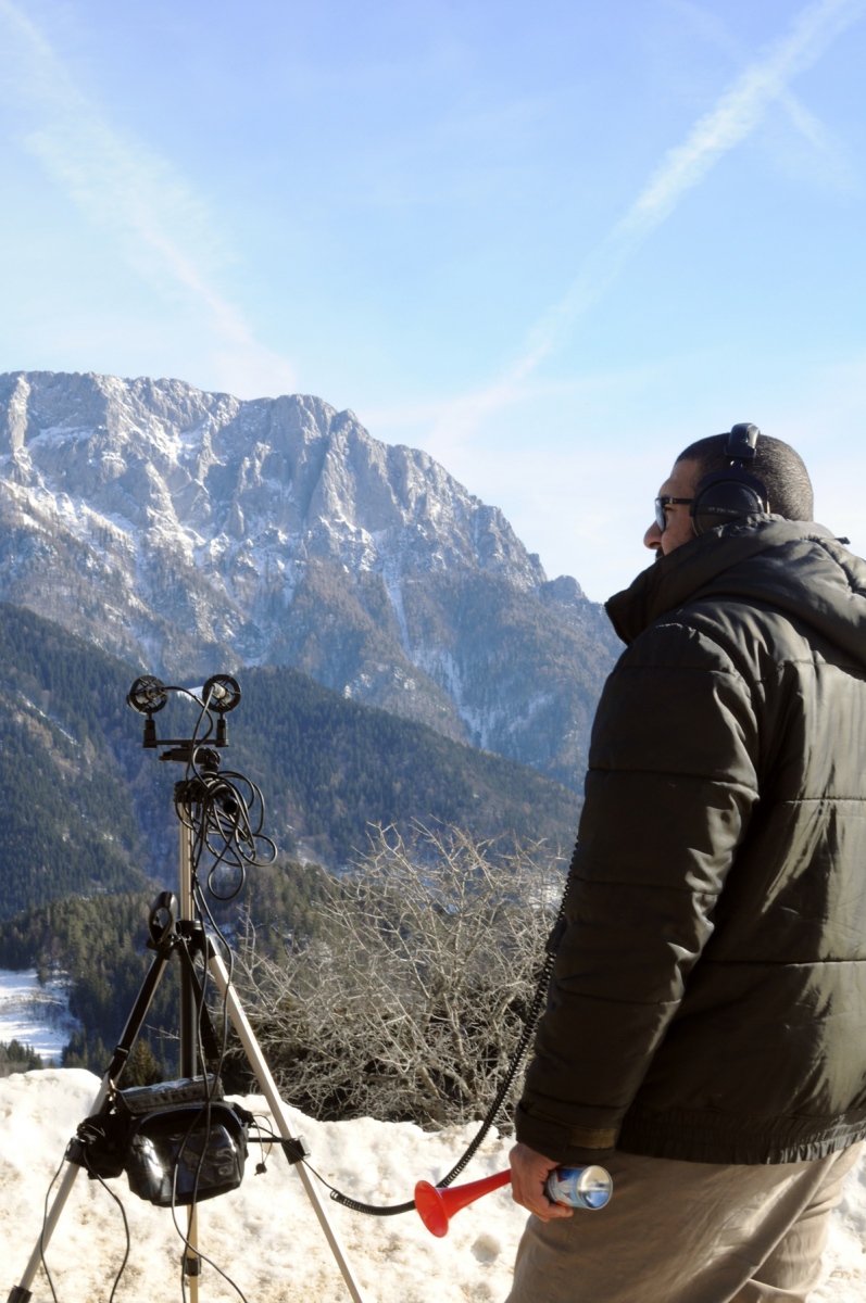 Fouad Bouchoucha dedicates his work to sound phenomenas, his researches leads him to focus on a mapping study of slovene landscapes through the medium of sound. Observing the modulation processes of sound persistance and reverberation through the specificities of space, the guest artist measures the reverberation potential of different reliefs, and turns them into sound boards through their various characterisctics of embossment. For the artist, the first step will consist in emissions and recordings of the same signal within several natural environments. The several sound outputs will be then used as primary material for the mapping of physical shapes and space entailing tensions between our perception, memory and acoustic reflexes.