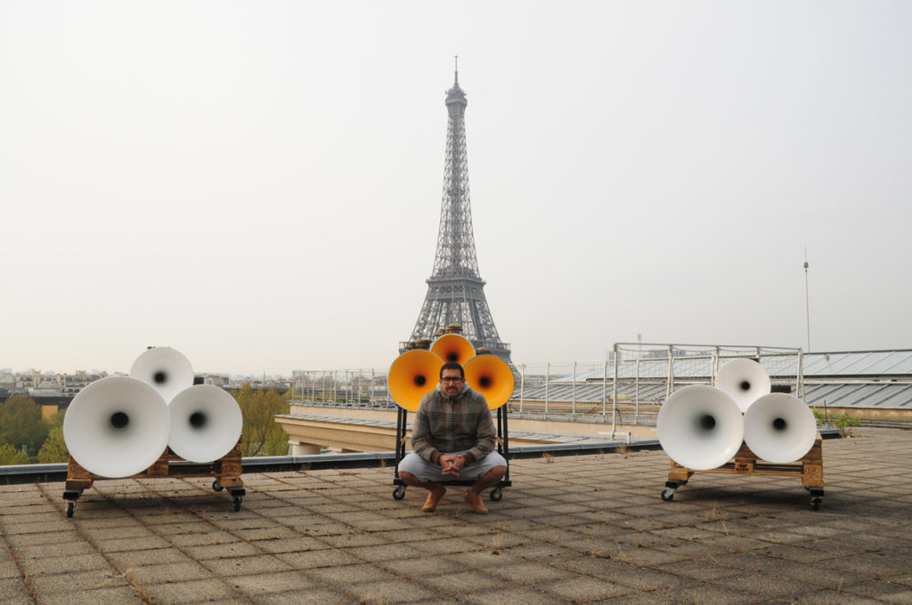 Through its use of mediums ranging from sculpture to theatre, and from video to performance to sound, Fouad Bouchoucha’s work focuses on creating systems that test the potentiality of things. His works catalyse the possibilities of an object, a place, or a situation. They summarise or multiply the forces involved. Often, power (of a Bugatti Veyron, of a Ronnie “Mister Olympia” Coleman, of an over-amplified sound system…) is interpreted through more or less transformed or pumped up objects – a condition that seems to betray their impending malfunction. Fouad Bouchoucha is particularly interested in various types of cultural and sports activities (body building, Sound Pressure Level…), and appropriates their codes in order to develop a deeply contemporary work. His production positions itself at a tipping point, where everything can still change.